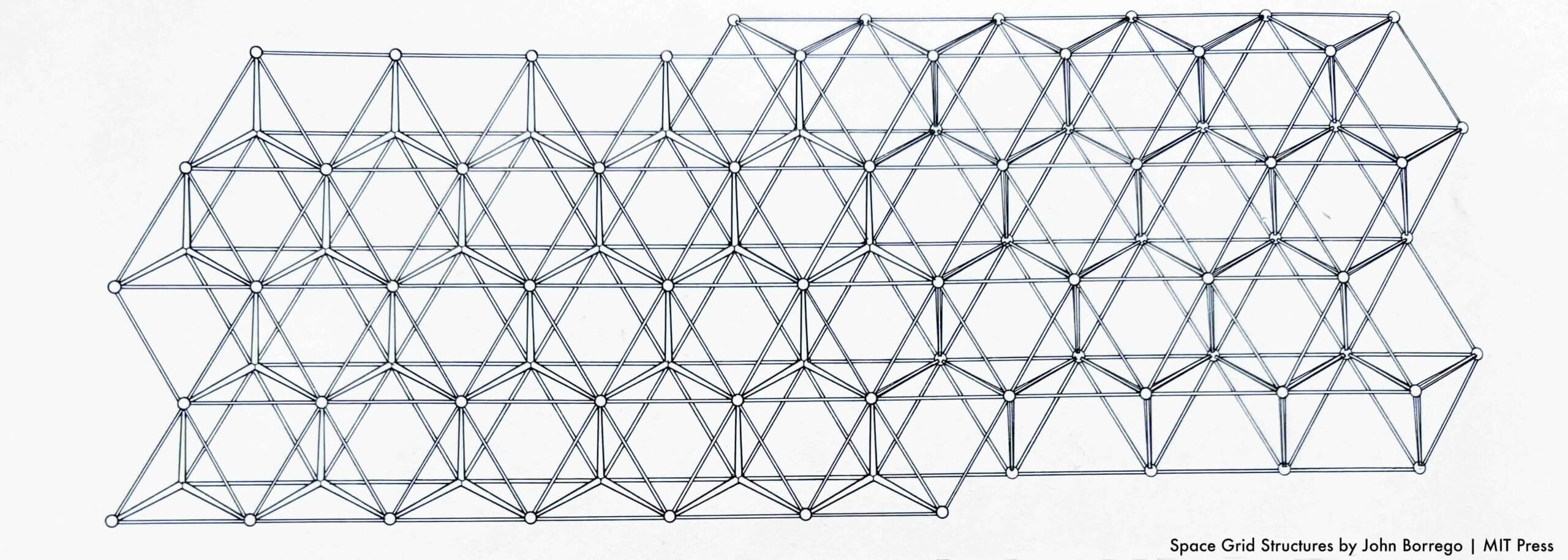When the centers of equiradius spheres in closest packing are joined by most economical lines, i.e., by geodesic vectorial lines, an isotropic vector matrix is disclosed — `isotropic’ meaning `everywhere the same,’ `isotropic vector’ meaning `everywhere the same energy conditions.’ This matrix constitutes an array of equilateral triangles that corresponds with the comprehensive coordination of nature’s most economical, most comfortable, structural interrelationships employing 60-degree association and disassociation. Remove the spheres and leave the vectors, and you have the octahedron-tetrahedron complex, the octet truss, the isotropic vector matrix…The isotropic vector matrix is four-dimensional, and 60-degree coordinated. It provides an omnirational accounting system that, if arbitrarily accounted on a three-dimensional, 90-degree basis, becomes inherently irrational. The isotropic vector matrix demonstrates the ability of the symmetrically and asymmetrically terminated, high-frequency energy vectors to accommodate the structuring of any shape.