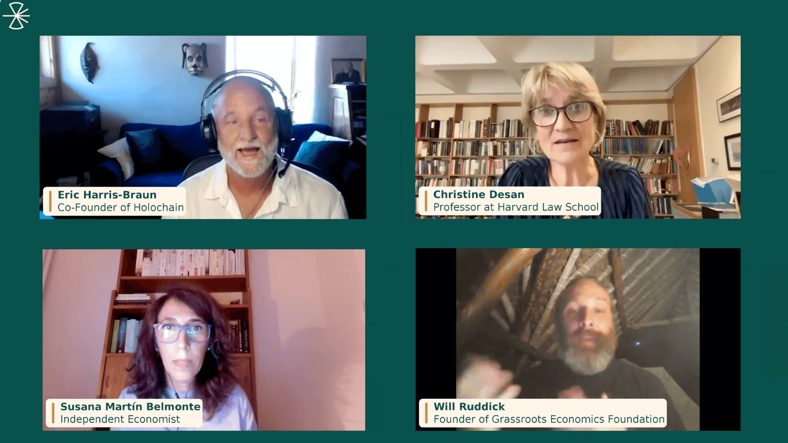 This month featured participants from three different continents: Professor Christine Desan joined economist Susana Martín Belmonte and Will Ruddick of Grassroots Economics. Eric Harris-Braun, Co-founder of Holochain and advisor to BerkShares local currency, hosted this international convening.